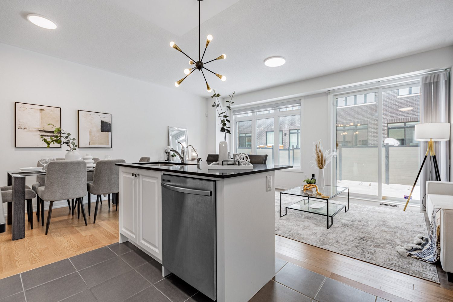 69 McCague Ave located in high demanded Richlands community and built by Opus. 3-year-old freehold two-storey traditional townhouse offers 1745 sq.ft. space(above ground) and 9 ft ceilings on both the 1st & 2nd floors. Hardwood floor on main. Open concept kitchen features large pantry, centre island, quartz counter top, stainless steel appliance package. Family room with a sliding door walkout to a south-facing backyard, bringing in plenty of natural light. Second floor includes three spacious bedrooms and two bathrooms. Primary bedroom w/10ft tray ceiling, double walk-in closets & 5 pcs ensuite. One garage parking and one driveway parking. Still under Tarion warranty. Conveniently located close to Highway 404, Costco, Home Depot, Richmond Green High School, and community centre.